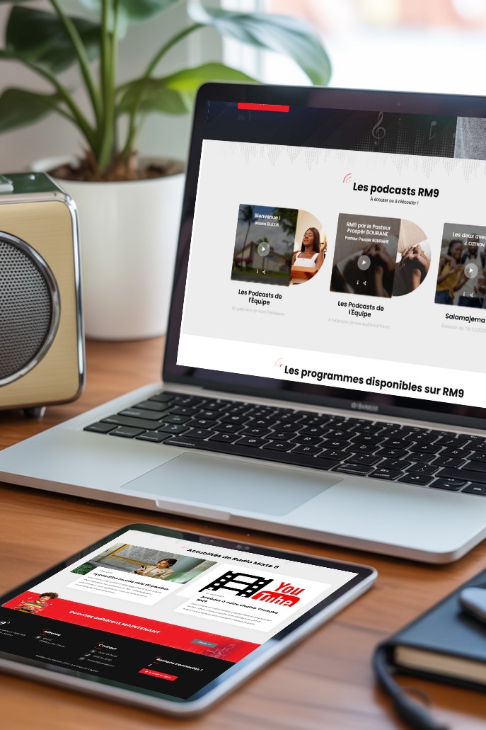 AgenceSolution.com a conçu une solution web sur-mesure pour la radio RM9 qui allie design moderne, fonctionnalité avancée et haute performance technique. La plateforme intègre une navigation fluide vers les rubriques clés telles que les programmes, les podcasts à écouter ou réécouter, les actualités et l’équipe de la radio. Grâce à une architecture pensée pour le SEO et l’expérience utilisateur, les auditeurs peuvent retrouver facilement leurs émissions préférées et interagir avec le contenu audio. La solution inclut une optimisation responsive, une intégration facilitée du streaming audio et des pages dédiées pour chaque rubrique, maximisant ainsi l’engagement de la communauté. Tous ces éléments démontrent les capacités de notre agence à répondre à des projets web exigeants — alliant stratégie digitale, technologie et design.